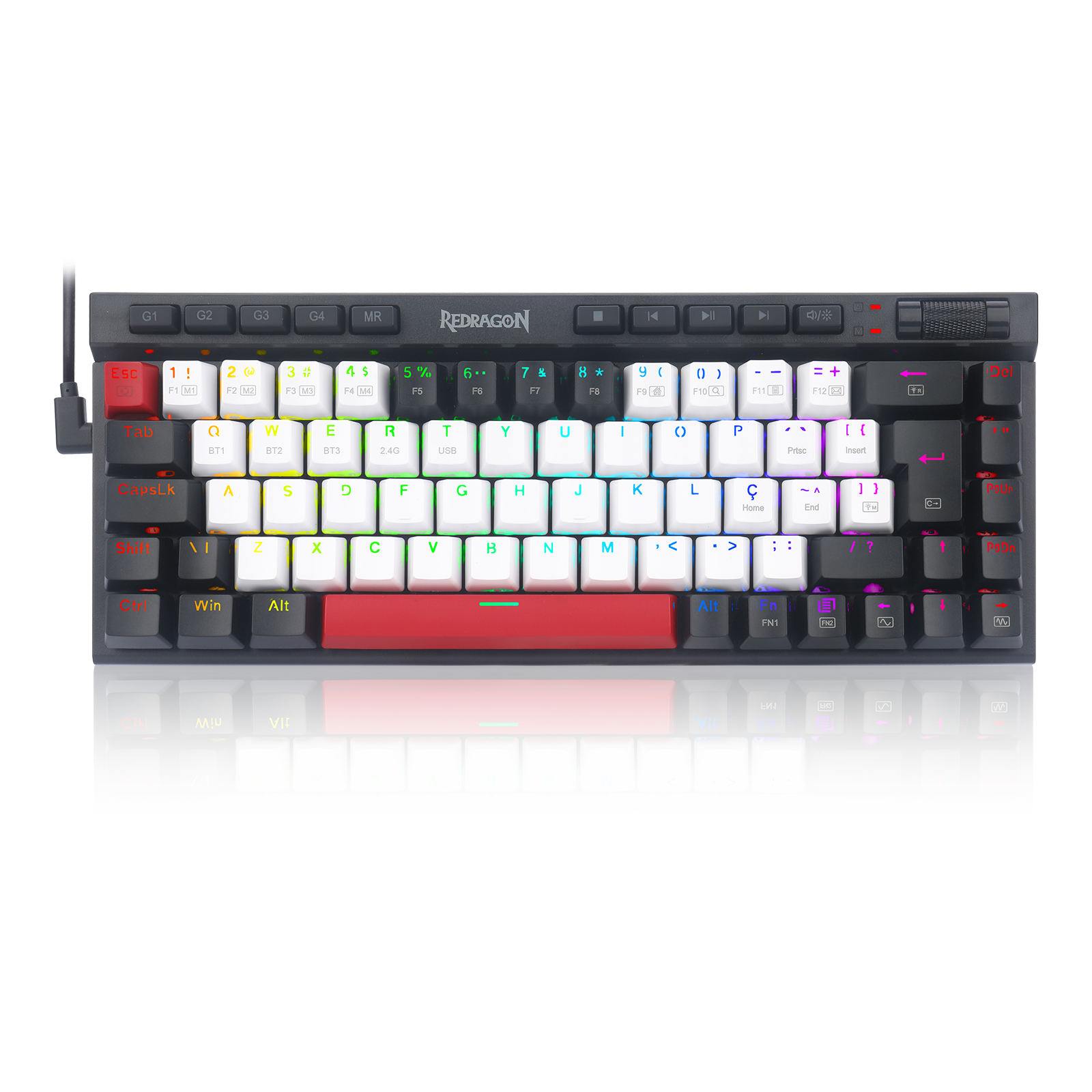 Teclado mecânico Redragon Magic-Wand Mini Pro Wireless e Bluetooth Branco, vermelho e preto, Switch Brown