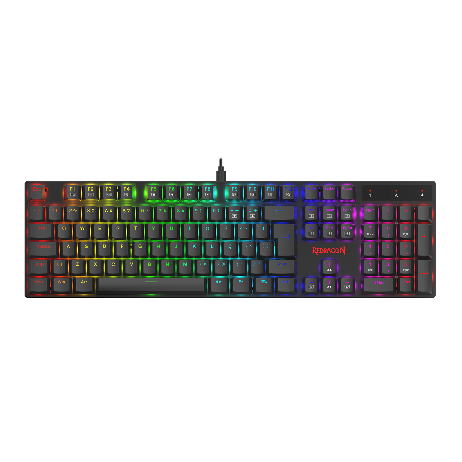 O Apas conta com iluminação RGB individual por tecla, totalmente configurável via software oficial Redragon: