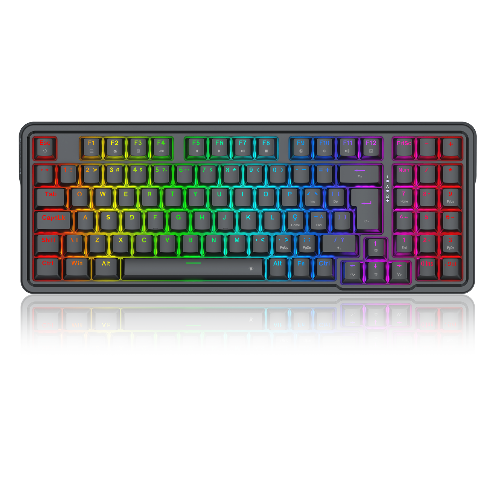 Teclado Mecânico Gamer Redragon Gloria RGB Preto 1800 Compact Gasket Mount Switch Marrom