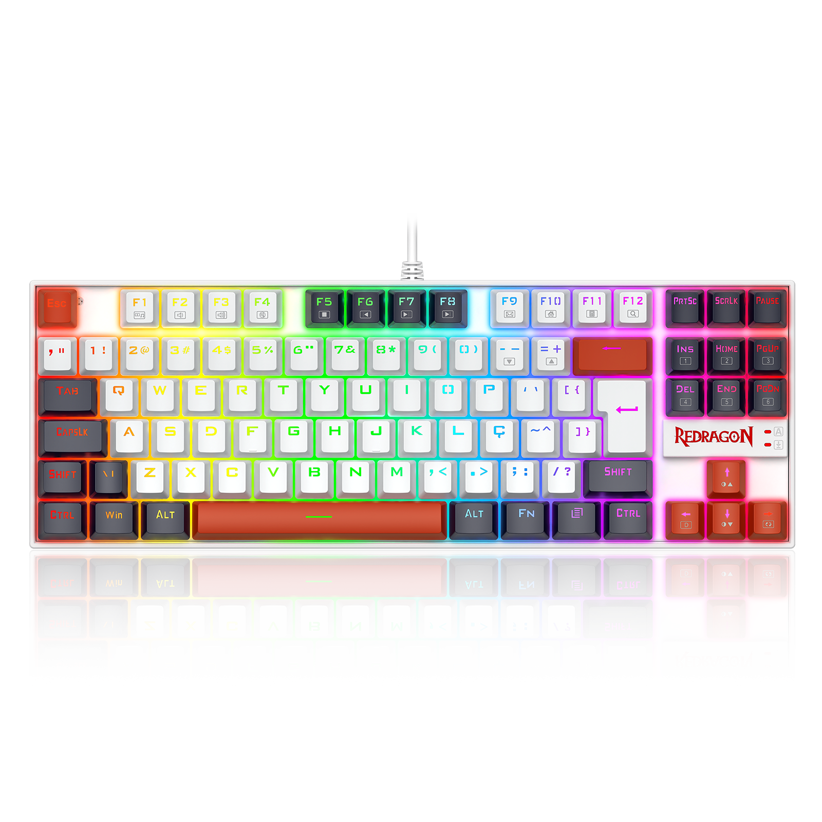 O Redragon Kumara K552WLR-RGB é a evolução do teclado gamer mais amado do Brasil — agora com visual tricolor vibrante nas cores branco, preto e vermelho, unindo o DNA competitivo da Redragon ao visual moderno e estiloso.