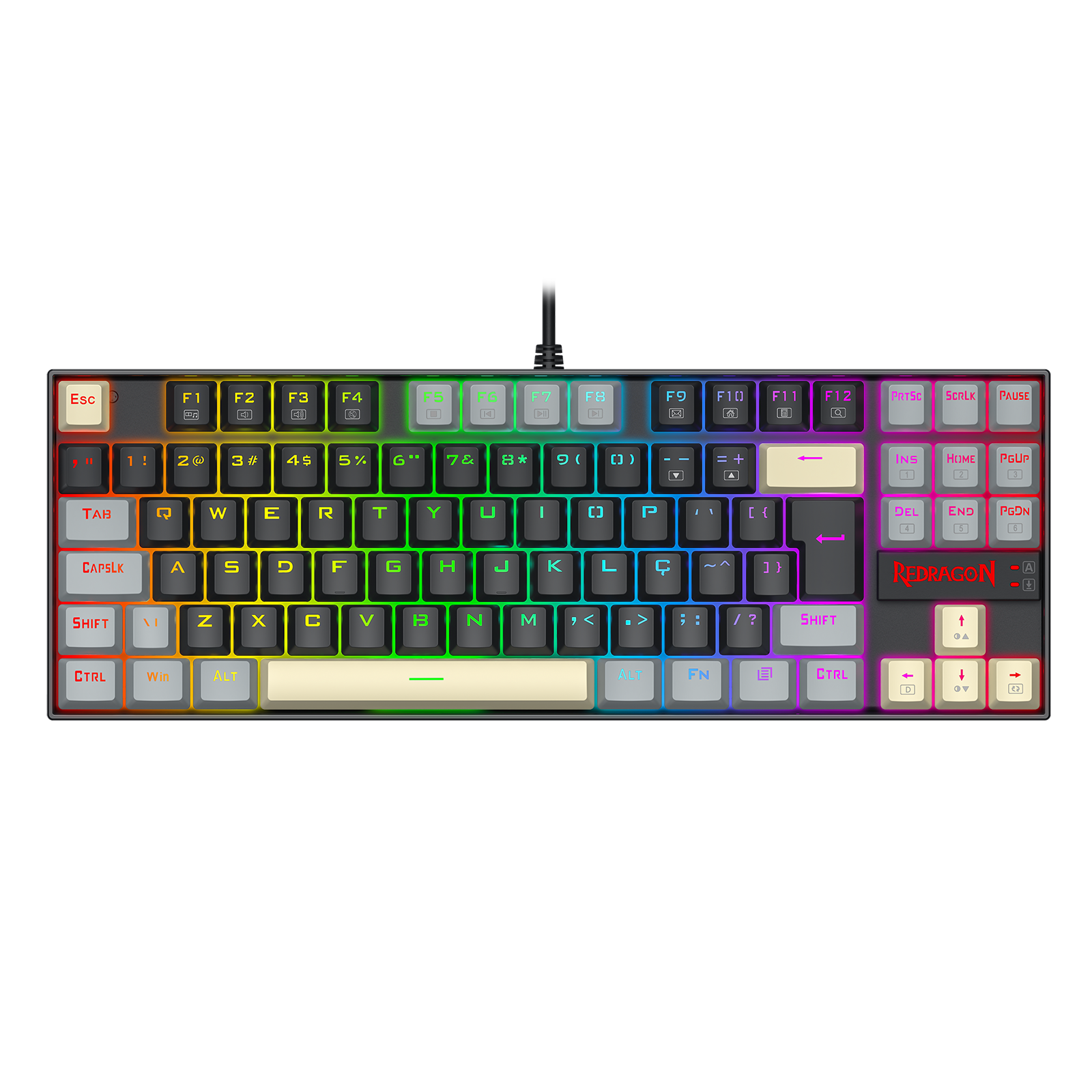 O lendário Redragon Kumara K552LGY-RGB chega com um novo visual tricolor — preto, cinza e amarelo — combinando estética moderna e performance profissional.