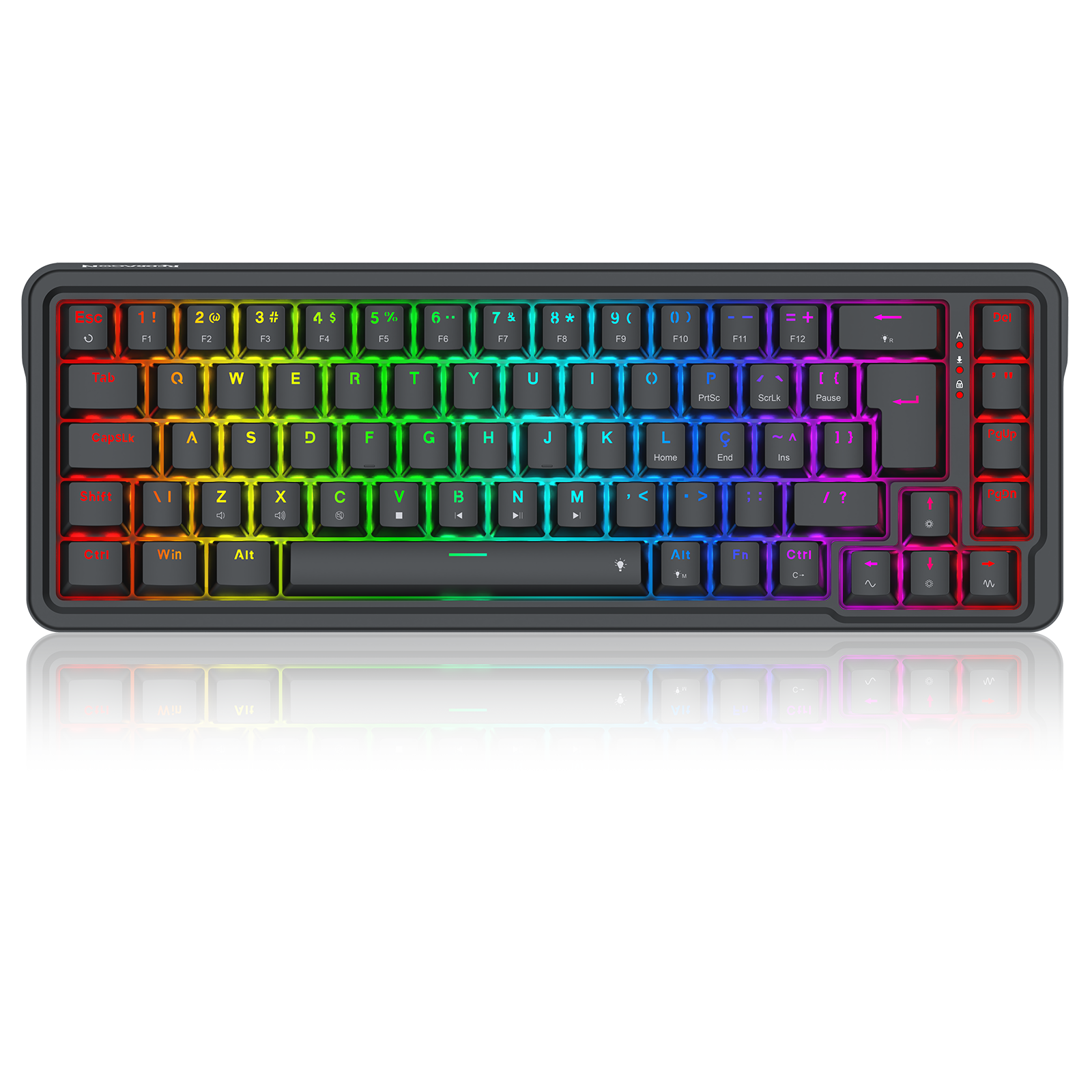 Seu tamanho 65% oferece o equilíbrio ideal entre compacidade e funcionalidade, liberando mais espaço na mesa sem abrir mão das teclas essenciais.