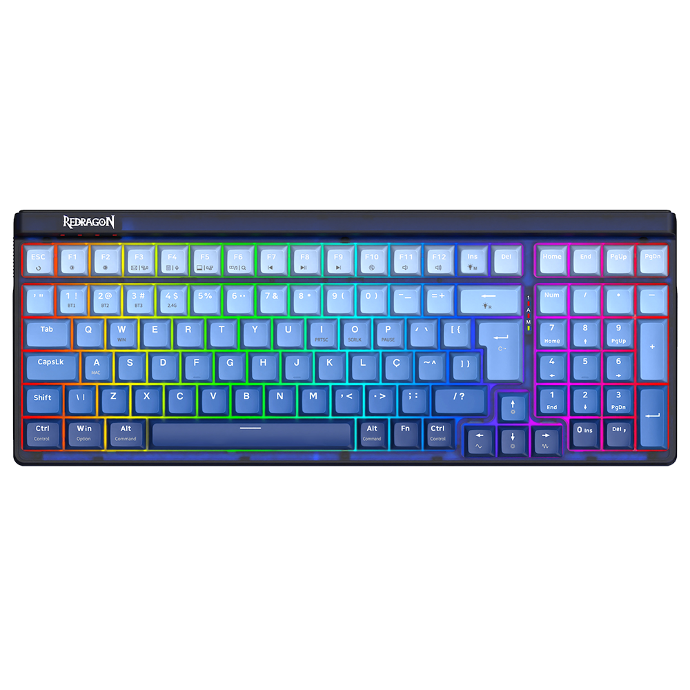 Teclado Sem Fio Redragon Garen Pro Azul RGB Mecânico 96% com Switch Purple